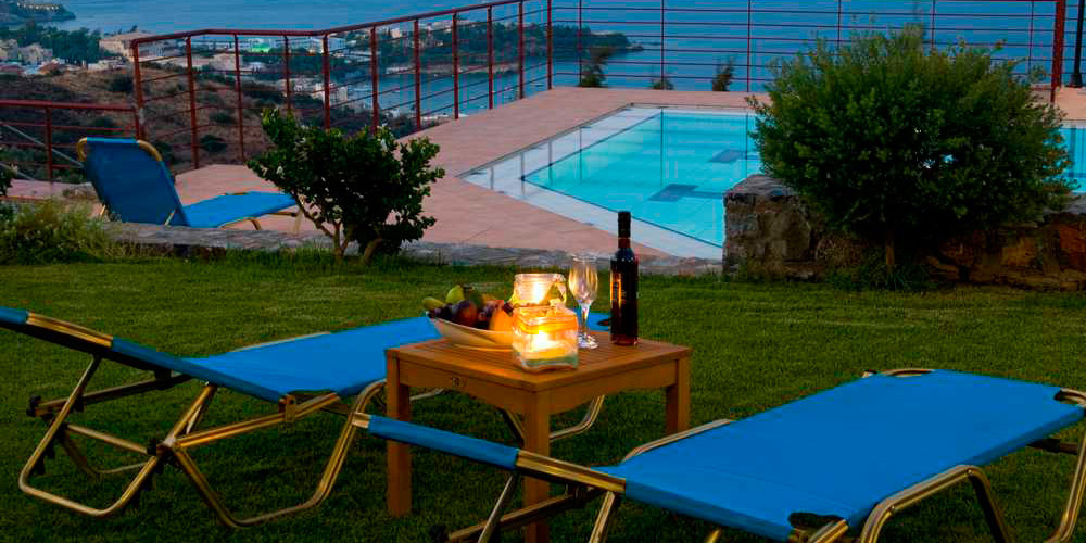 Vacation in Crete and ''Agnanti'' villas with the magnificent view over the bay of Agia Pelagia and the Cretan sea.